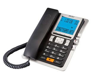 Teléfono Fijo Alámbrico Select Sound 8028 Negro cuenta con altavoz, pantalla LCD con luz de fondo, alarma, hora y fecha. Opción para bloquear llamadas salientes de larga distancia y a celular, función de tono o pulso, volumen ajustable, tono de llamada en espera y memoria para 50 llamadas entrantes y 14 llamadas salientes. Los mejores productos los encuentras en VIU.